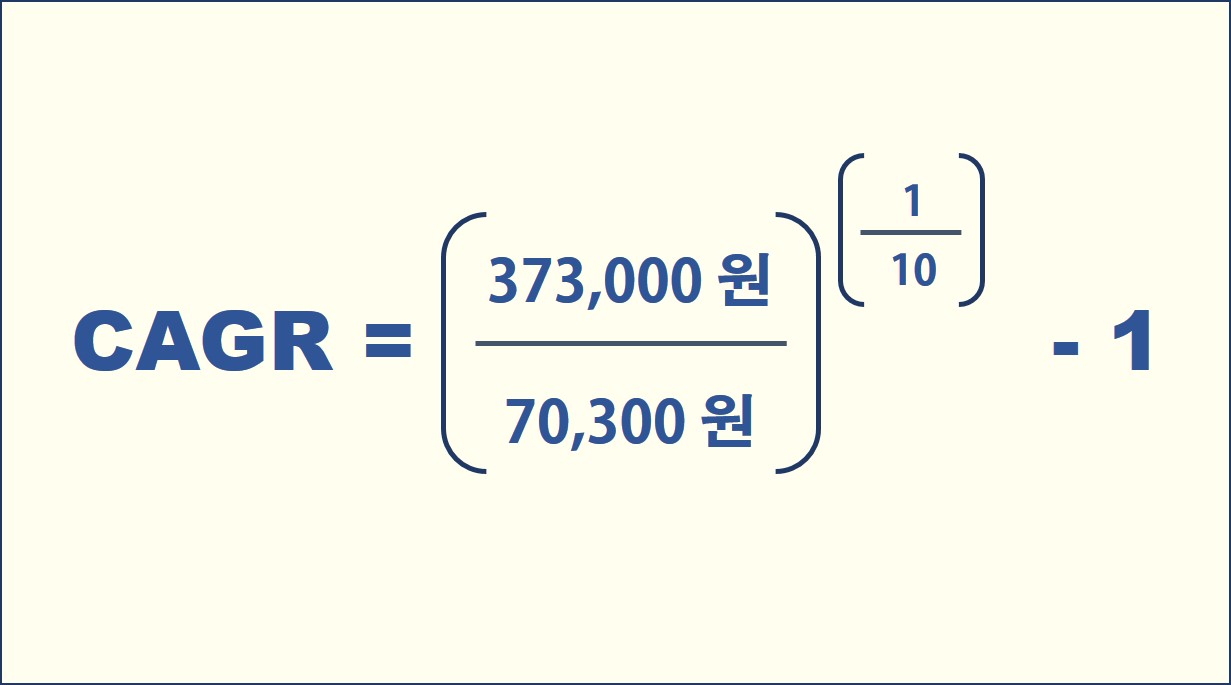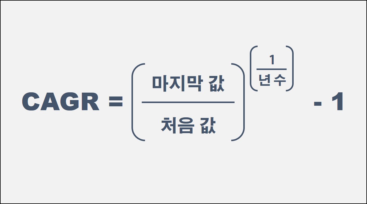 이 값을 CAGR 공식에 대입해 보면 아래처럼 되겠네요.